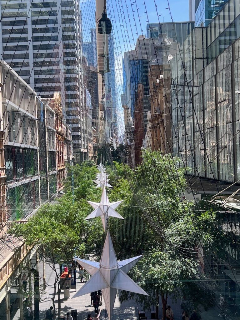 Outside, Pitt Street Mall’s famous Canopy of Light transforms the precinct into a glowing tunnel of stars, drawing thousands of visitors every year.